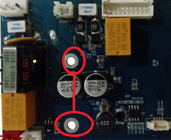 以上实验做完发现测试正常未损坏。查看电路板分析,在整机中电源板的螺孔都是固定在整机结构上的,整机结构是金属件,所以他们是连在一起的属性,所以采用导线把两个螺孔连在在一起,模拟实际地回路。(备注下图上螺孔为PE地,下螺孔为数字地)